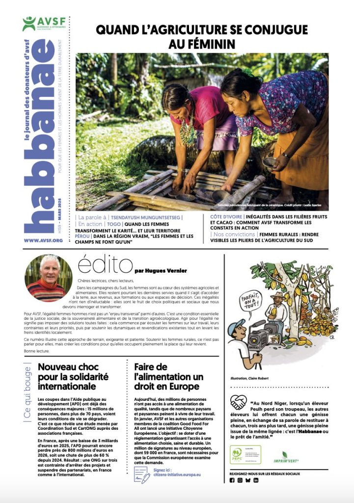 If you would like to receive Habbanae for one year, all you have to do is make a donation to AVSF or subscribe for €12 per year by calling donor services at +33 (0)1 43 94 72 35 or by sending an e-mail: donateur@avsf.org